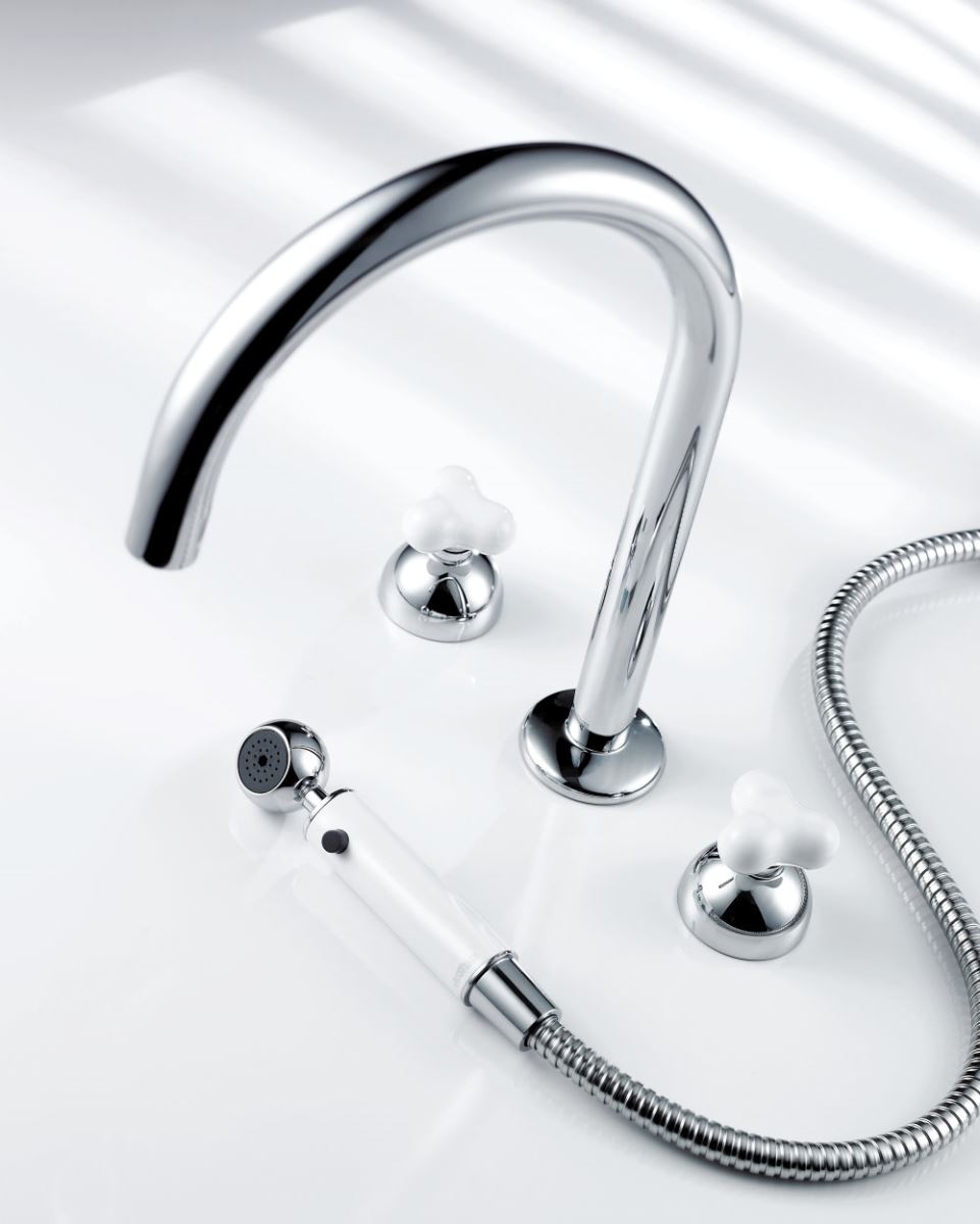 JUSTIME Design Team研究傳統的龍頭,希望回到初衷,試著找出原始之美,這也就是STORY系列龍頭誕生的緣由。顛覆廚房雙把手龍頭原有的古典風格,將出水管、把手及洗滌器,以圓形為主要元素,運用白色陶瓷與銅電鍍做搭配,設計出略帶俏皮的普普風格,不但帶給使用者豐富的感官享受,圓潤的外表更緩和了使用者在廚房的氣氛。將出水管與裝飾桌面的法蘭蓋設計成一體的結構,以改善汙垢容易囤積的缺點,內藏式的起泡器,省去了出水口處原本必須分離成兩個零件,降低生產成本。