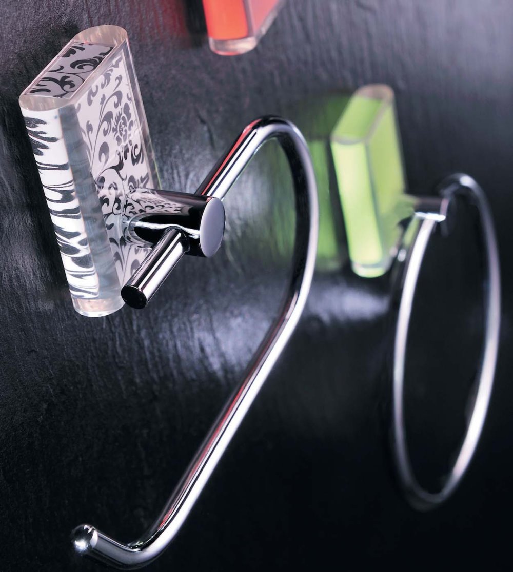 晶瑩剔透的壓克與圖騰印花主體或是單色彩度的主體搭配運用。不管是引用單品或是互相搭配,都能展現出產品設計的多元化效果.,在繽紛的色彩裡面帶著異國的風情,浴室的牆上鮮艷的浴室配件,讓人感覺處身於浪漫的異國情調之中,為衛浴空間增加一分浪漫的美術氣氛。