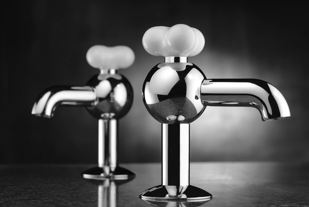 此款經典之作,不僅保留原始長栓龍頭的形象,更結合當代與時尚的元素,以令人愛不釋手的圓球造型為本體及把手的基調,更利用陶瓷與銅材質的結合,顛覆水龍頭以往的剛硬,創造出另一番柔美印象。