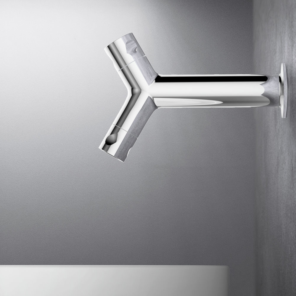 Y字型分配冷熱水把手與水量大小,使用者可依自身習慣調整適宜使用溫度,往後使用時僅需調整水量開關,不需再重新調整溫度。