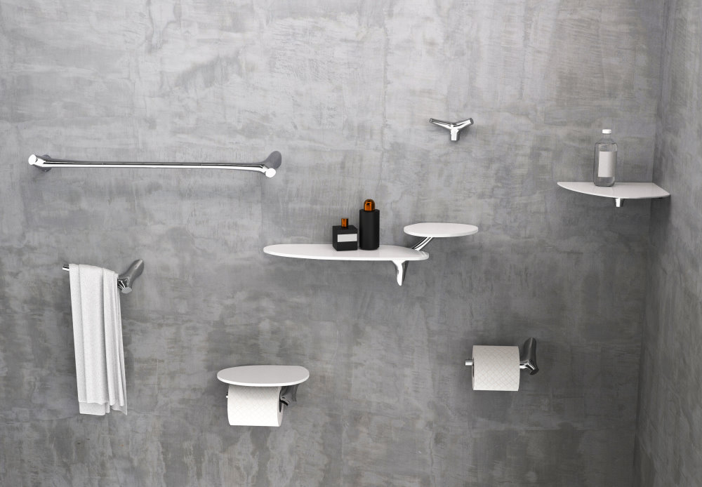 Nature浴室配件呈現出自然就是美的概念,將各品項藉由不同加工角度產生出不規則線條折射,使自然的弧線更加有活力,在金屬與人造石冰冷的材質下,呈現出產品有如自帶有熱情與生命力一樣各自生長。