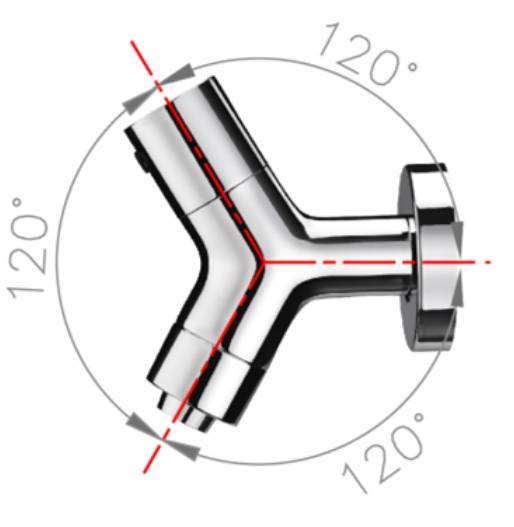 以簡潔的Y字造型與時尚元素為設計理念,將圓柱結合人體工學設計概念,把手、本體與出水口各120角度設計,以最短的材料設計達到最佳的出水效果,讓使用者操作及安裝水管都不會碰撞到牆面。