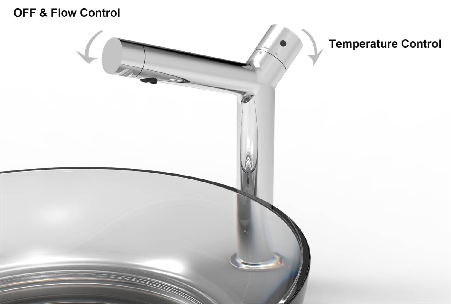 結合溫度控制的後端把手與水量調整的前端把手,雙把手設計。使用者可依自身習慣,調整適宜之使用溫度,往後使用時僅需調整水量開關,不需再重新調整溫度。節省溫度之調整時間,相對節省等待時之耗水。
