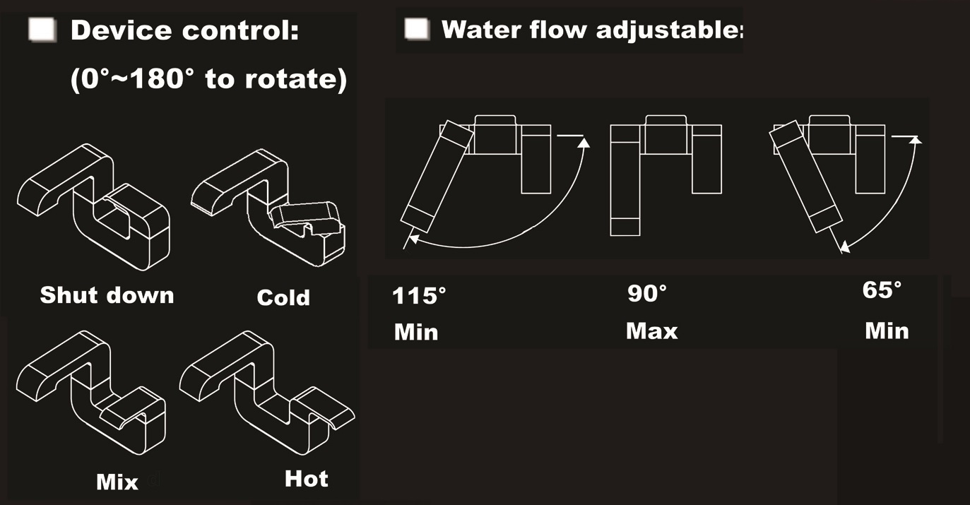 把手用於溫度控制,面盆水龍頭的出水口可以隨著旋轉而控制水流量。